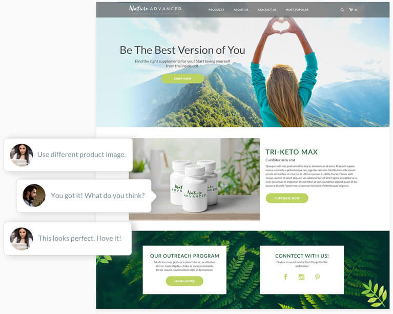 We’ll transform your theme with new fonts, branded colors, professional graphics and updated homepage layout. You’ll also receive a contact us page and technical SEO optimization.